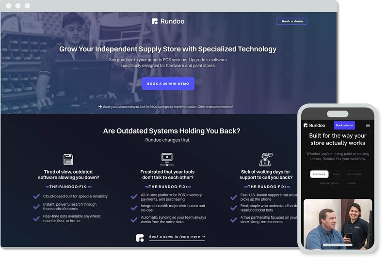 Rundoo is a modern software platform built specifically for the building materials industry. They empower local businesses to modernize their operations and compete effectively with big-box retailers through AI-powered tools and streamlined workflows. We were engaged to manage their Meta and Google Ads ecosystems, build a scalable creative testing framework, and shore up their data tracking infrastructure.